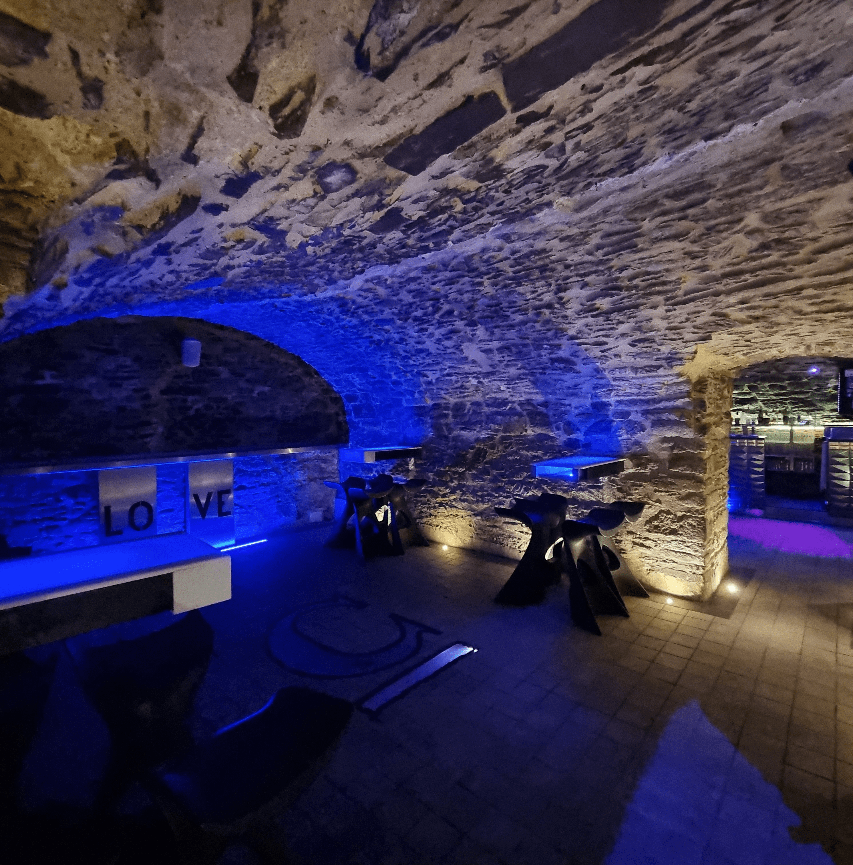 Une ambiance underground au sous-sol avec sa propre musique.